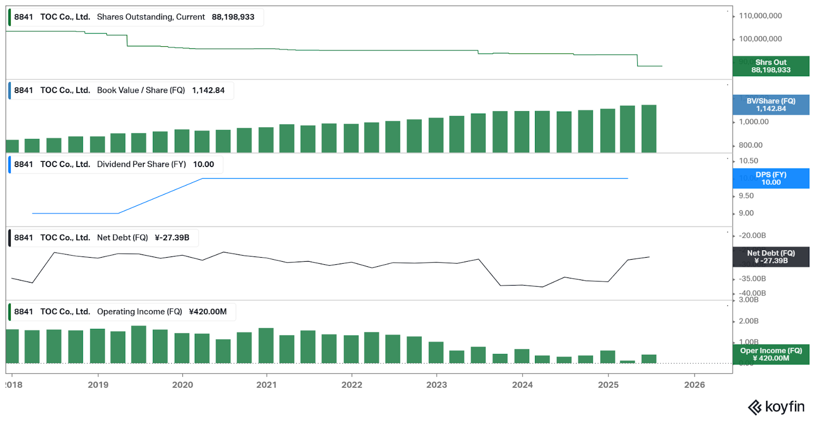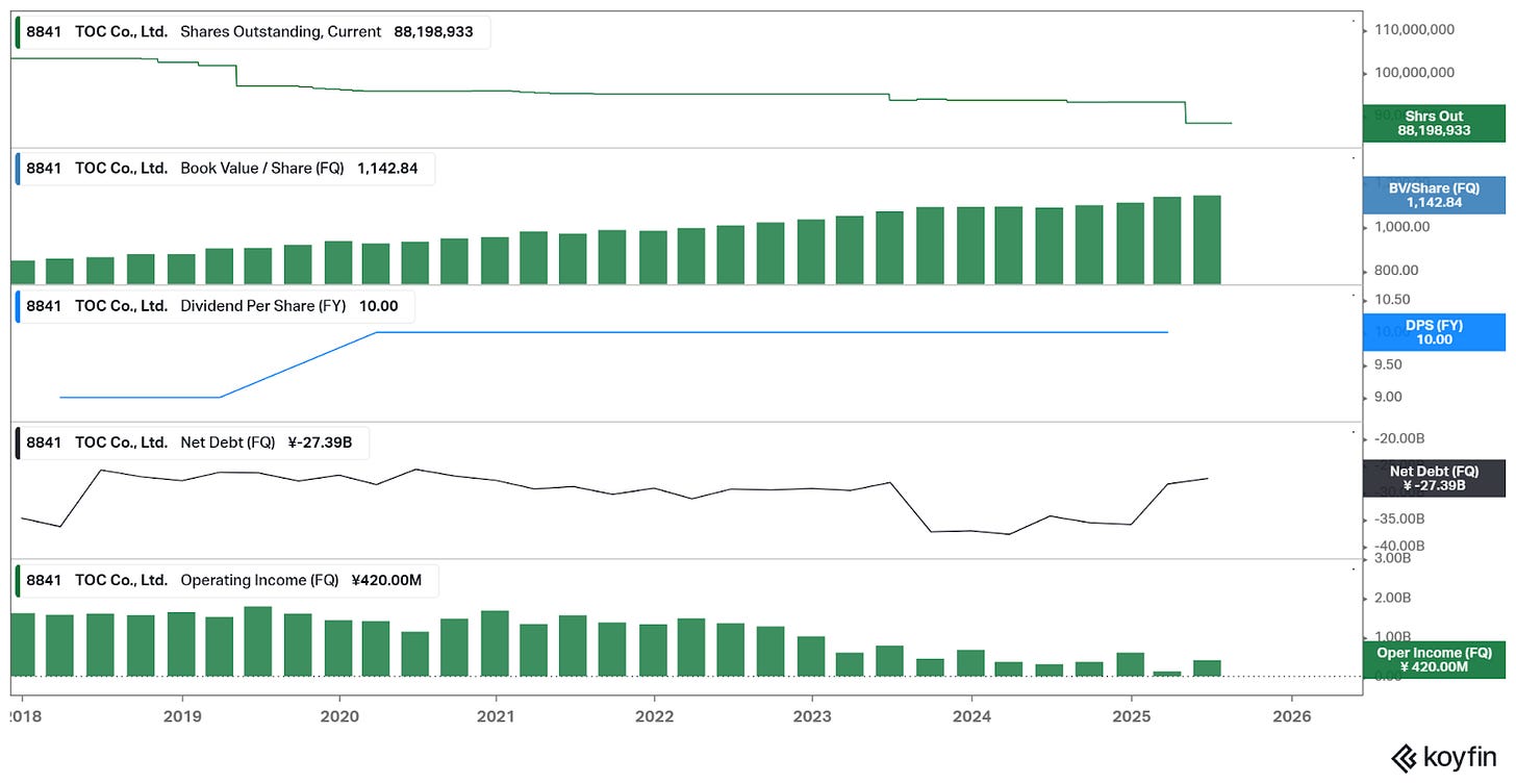 The company owns an 8.4% stake in New Otani, an unlisted hotel company, which is worth significantly more than its carrying value. All unlisted stakes for TOC are carried at ~¥0.85 billion, but just multiplying 8.4% by New Otani’s net assets is ¥7.6 billion. The company is likely worth much more given undervalued land. New Otani also earned ~¥10 billion in net income in FY24 and FY25.