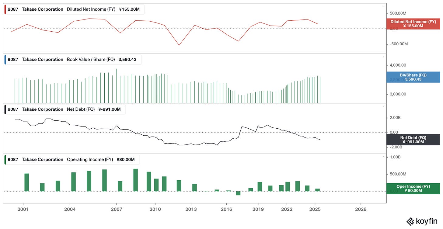 Takase is yet another small cheap logistics company. Readers and followers on X should know by now that I’m a fan of the sector, especially since the biggest win in the Japanese basket was Nissin Corp (9066) which I wrote about last year. It’s up 80% since then, but it’s a name I’m up over 200% on, as I bought it in early 2024.